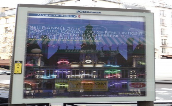 Les voeux de Delanoë affichés sur les panneaux municipaux atteignent cette année des sommets de mièvrerie ! Plusieurs lecteurs nous ont signalé le ridicule des derniers voeux delanoesques qui battent, il est vrai, des records en matière de politiquement correct et de débit d'eau tiède.