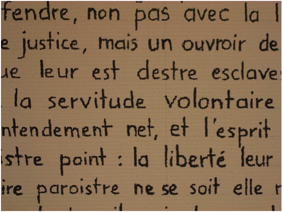 Confronté actuellement aux dérives, ou plutôt à l’essence même de la démocratie française (cf. François Furet in La révolution Française), il est difficile de ne pas songer à ce qu’écrivait La Boétie dans son « Discours de la Servitude Volontaire » (ed. Mille.et.une.nuits – 1995), car j’y trouve bien des points communs entre nos démocraties et la tyrannie et je ne saurais trop conseiller de lire cet opuscule de 50 pages tellement lucide qu’on peine à le croire écrit par un homme de 18 ans !